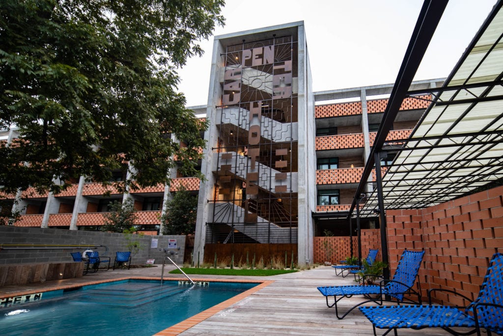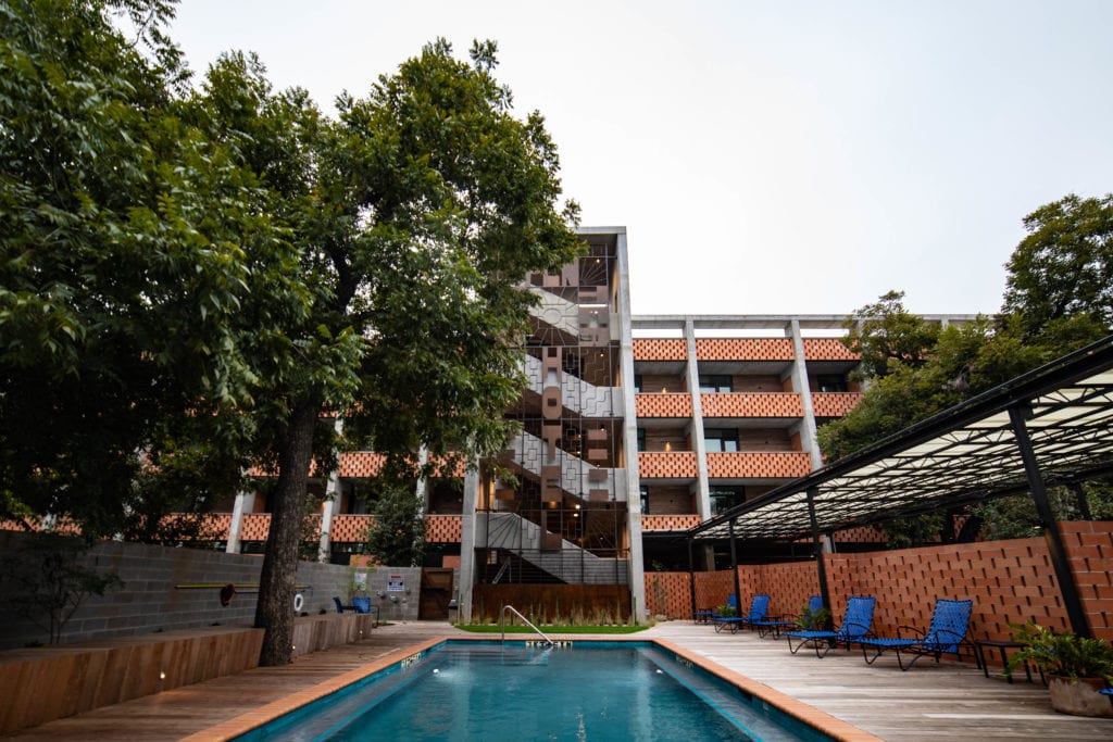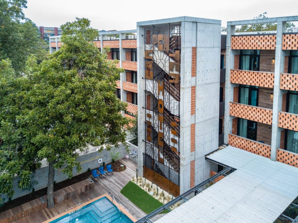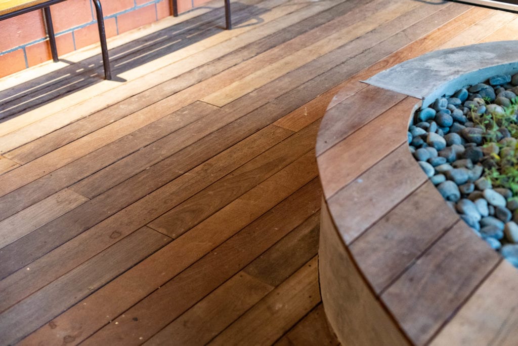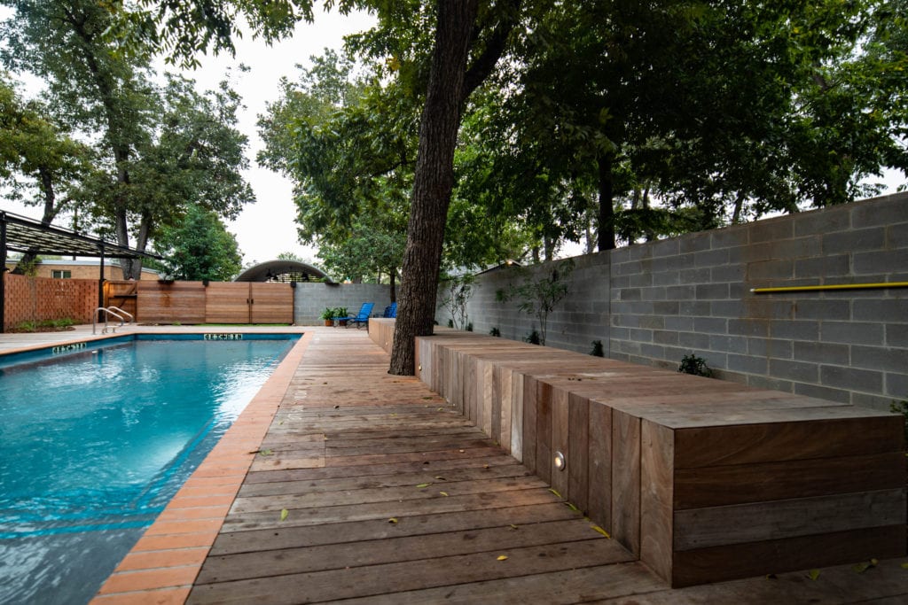 It's a tall order to come to downtown Austin and try to reproduce the eclectic and artsy design that is beloved by current residents and out-of-towners alike. When planning out it's next Hotel, the Mighty Union considered every angle and developed a boutique hotel, restaurant, cafe and event space that has just the right amount of quirkiness with a dash of modern sophistication. Anchored by the old carpenter's union, The Carpenter Hotel and parking garage were new construction while the old union hall was renovated into a restaurant/bar and cafe. A major part of the project was the pool and courtyard that connects the two spaces and offers a small event space for live music (because it's Austin, the live music capital of the world). Brazilian Hardwood Ipe (ee-pay) was used for the decking and as an accent throughout the hotel. Ipe was an excellent choice since it will last for decades and once it silvers-out it will mesh perfectly with the rest of the hotel's aesthetic.