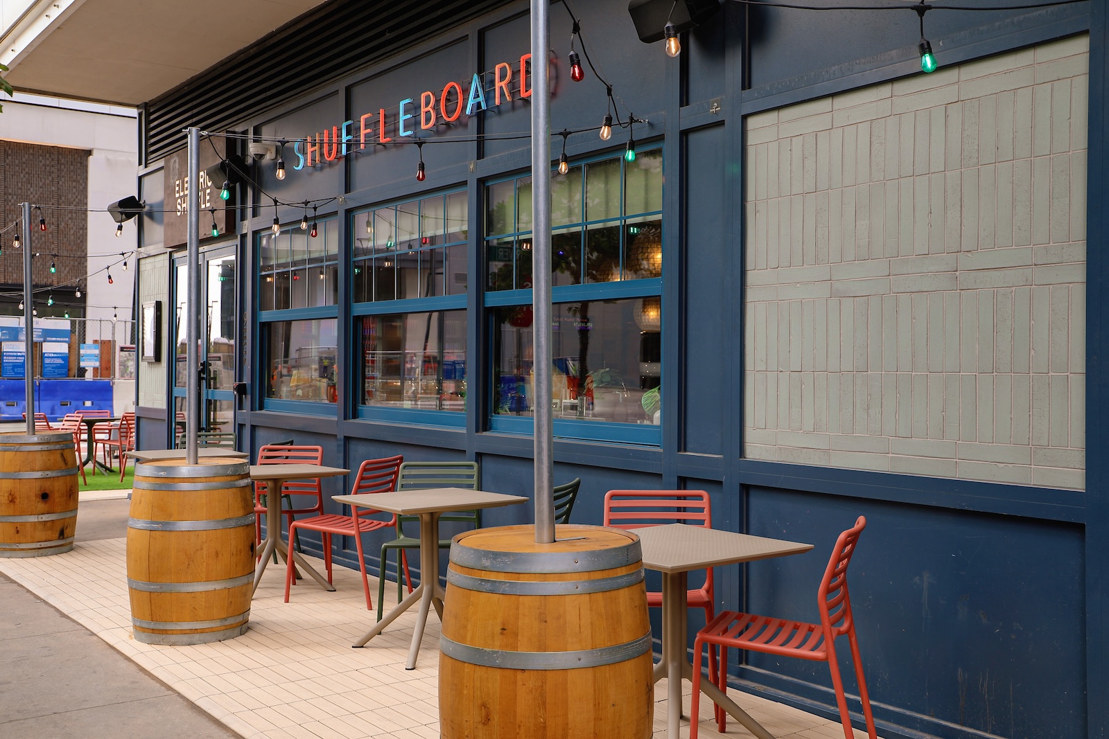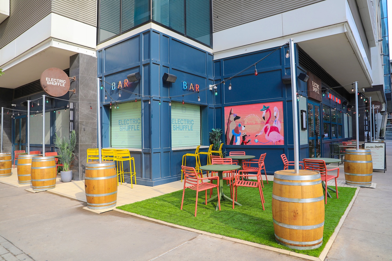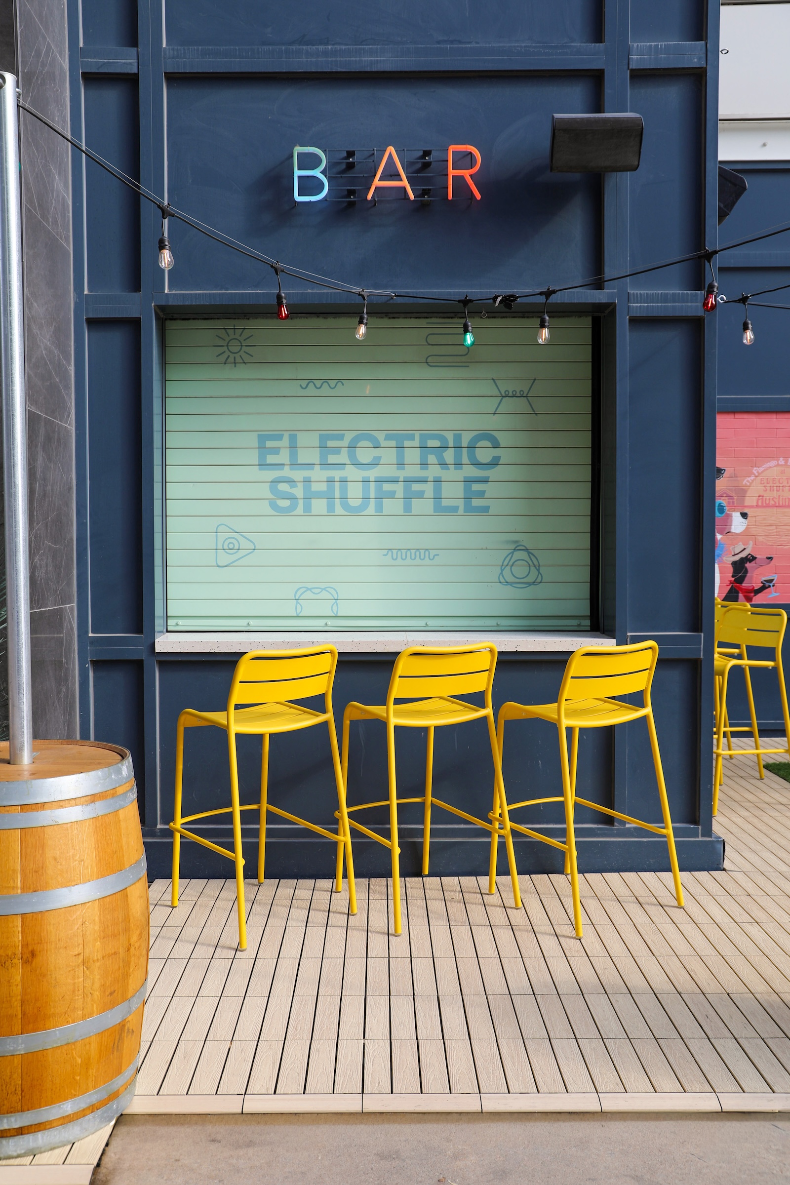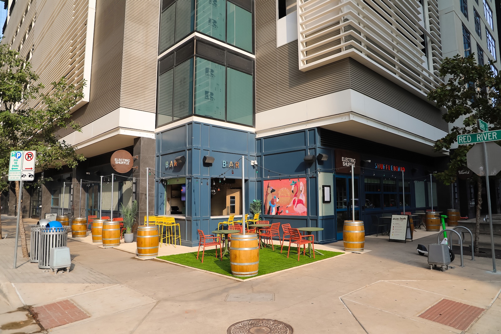 Right in the middle of Rainey Street, Electric Shuffle Austin doesn’t sit still. It’s one of those spots where the energy pours outside, and the patio becomes just as important as what’s happening inside.