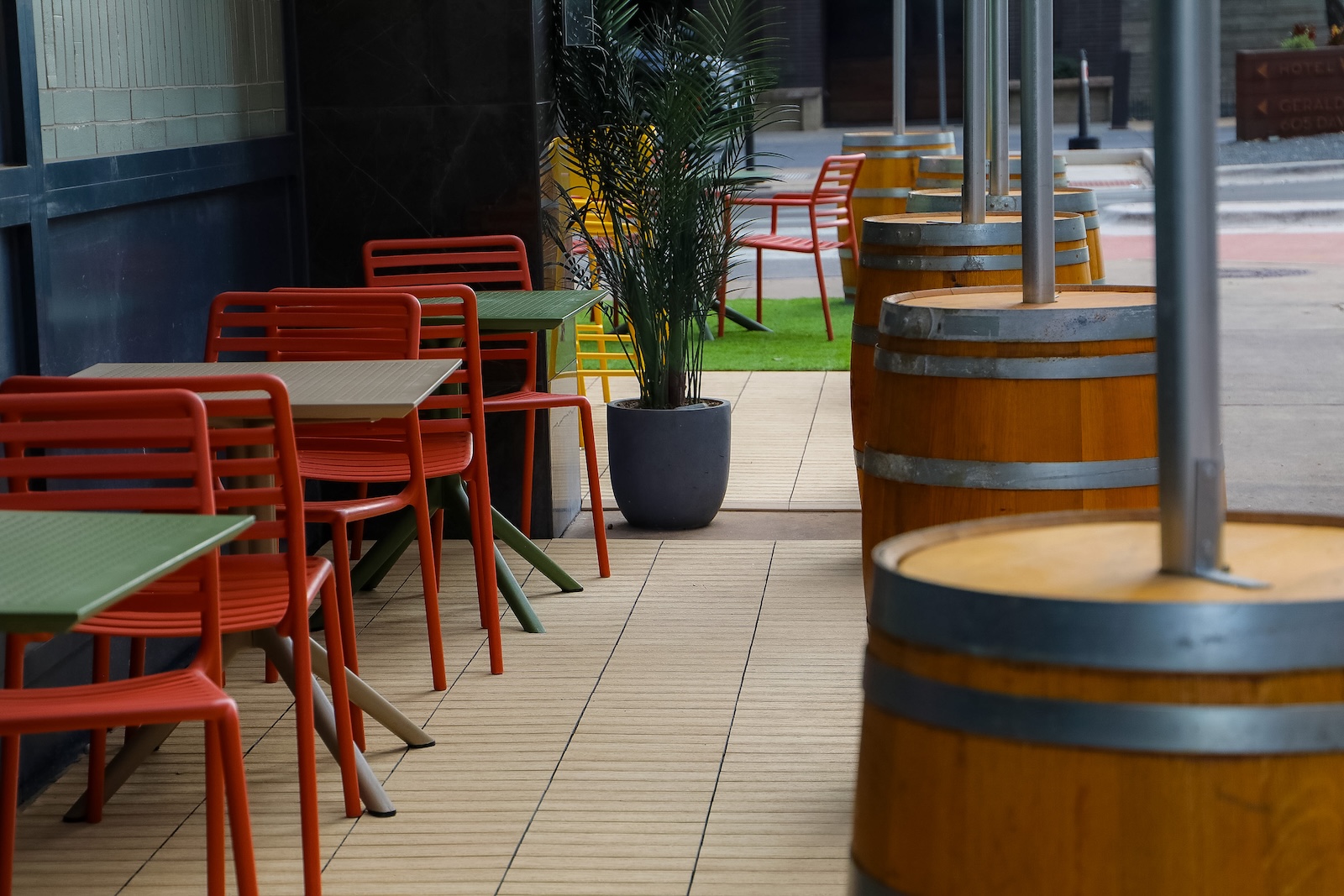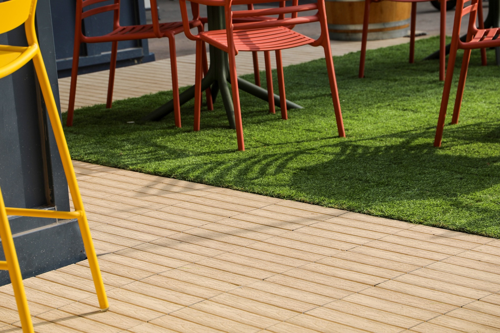 What used to be a stretch of sidewalk is now part of the experience. By installing NewTechWood UltraShield® Naturale™ Deck Tiles directly over the existing concrete, the space becomes something people actually step into, not just walk past. It pulls people in, adds warmth, and makes better use of the footprint they already had.